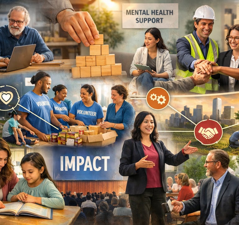 From strengthening nonprofit operations and founding mental health access initiatives to designing corporate-community partnerships and leading purpose-driven events — the work spans sectors and scales. Every engagement is grounded in the belief that the right systems, relationships, and experiences can amplify mission-driven work and create lasting change.